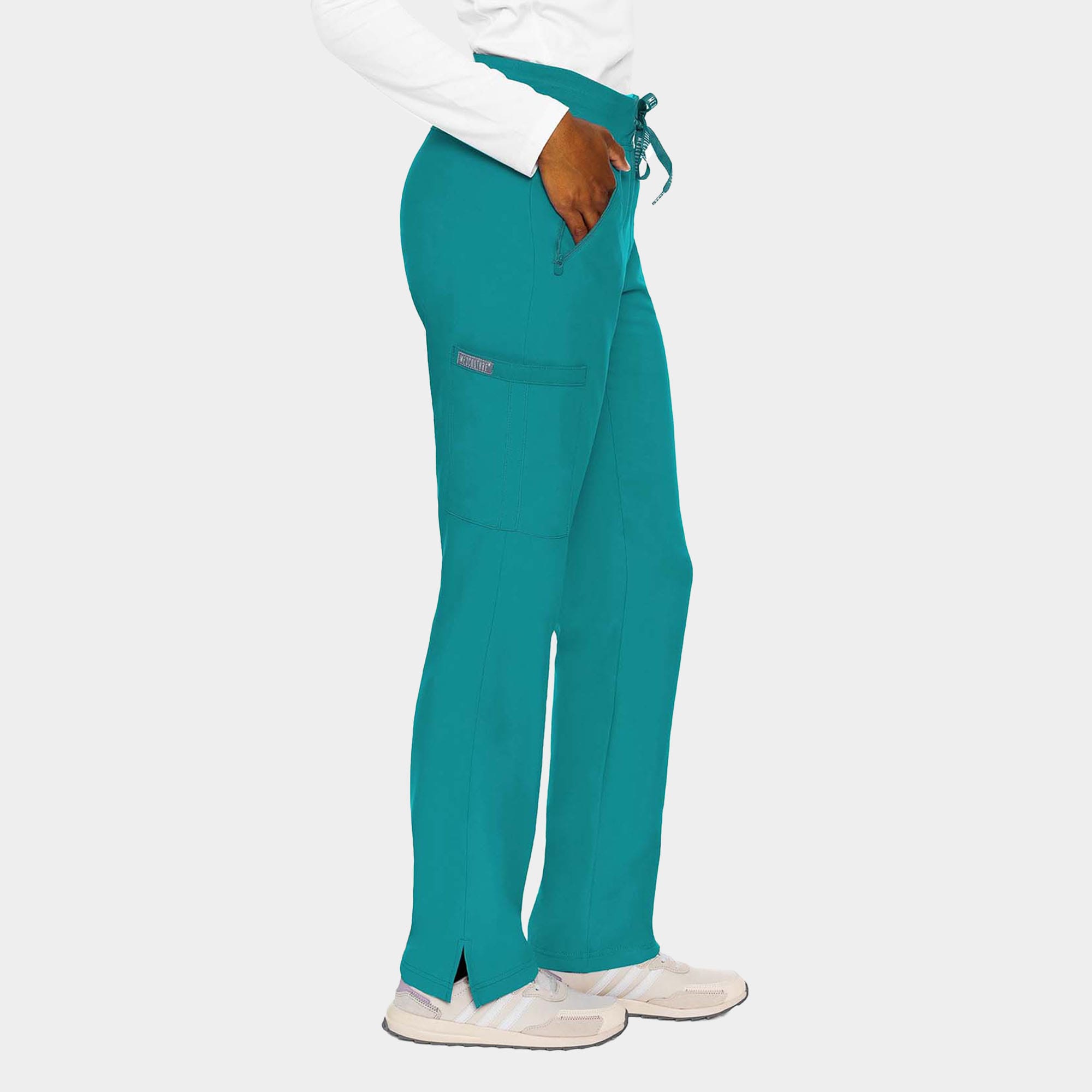 - Features: Mid-rise jersey knit waistband & cuffs, adjustable drawstring, and straight leg with side vents
